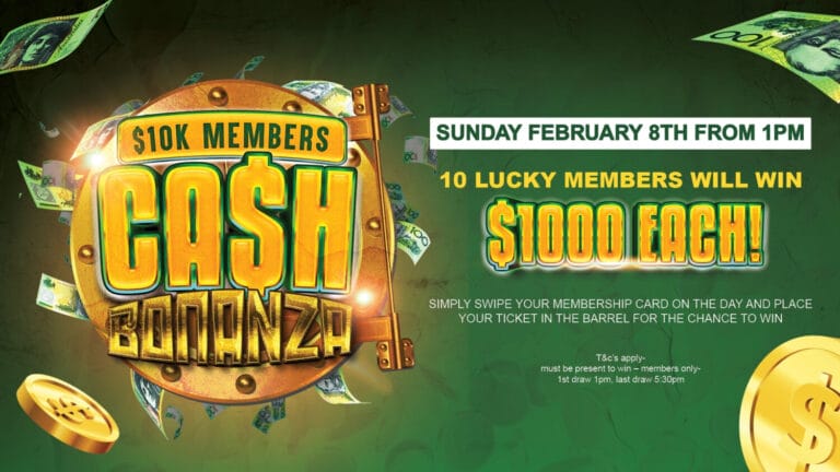 Join us at Club Helensvale for another exciting $10K Members Cash Bonanza from 1pm!