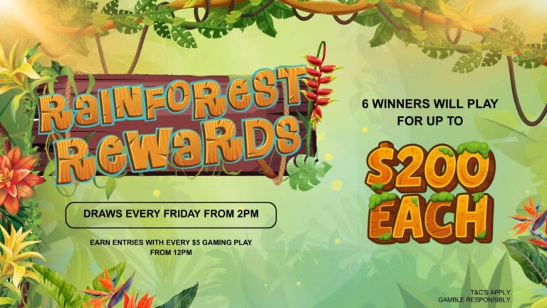 Members play for the chance to win up to $200 CASH each every Friday from 2.00 pm – 4.30 pm in Rainforest Rewards!